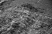Bentonite formed through devitrification (weathering) of vitreous volcanic ash. Bentonite is the commercial name of a whole range of natural clays with a high water absorption capacity causing it to expand and swell. Bentonite predominantly consists of montmorillonite: a clay mineral belonging to a class of phyllosilicates called smectites.